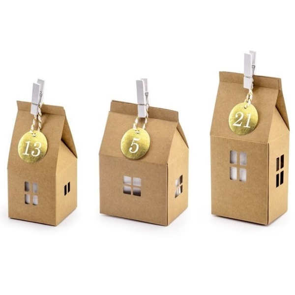 Adventní domečky v přírodě stylu obsahují 3 typy papírových domečků v kraftové barvě.