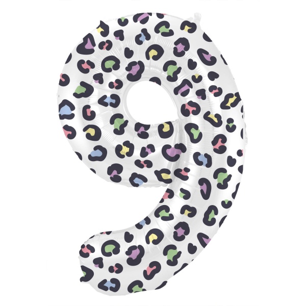 Narozeninový fóliový balónek ve tvaru číslice 9 Duhový panter