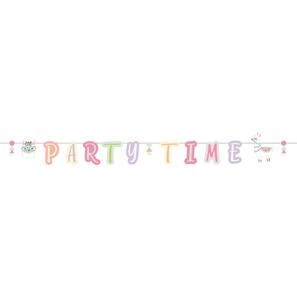 Originální barevný banner „Čas na párty“ s Lamou je tou správnou volbou k doplnění výzdoby tématické Lama párty.